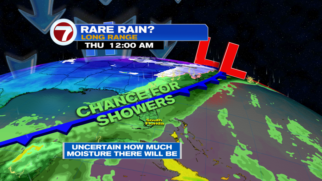 Eventually by the middle of next week in the long range, another front will approach and this one could stir up some moisture, leading to a rare rain chance. Currently the odds of seeing rain are low but we’ll have to wait and see how this evolves.