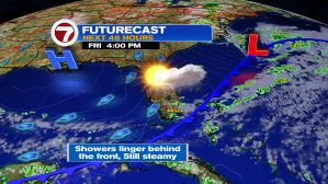 A front will traverse South Florida on Friday bringing with it a chance for stray downpours.