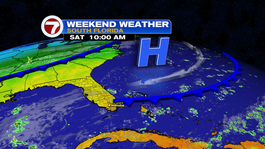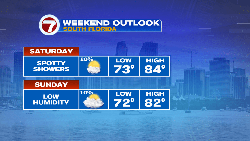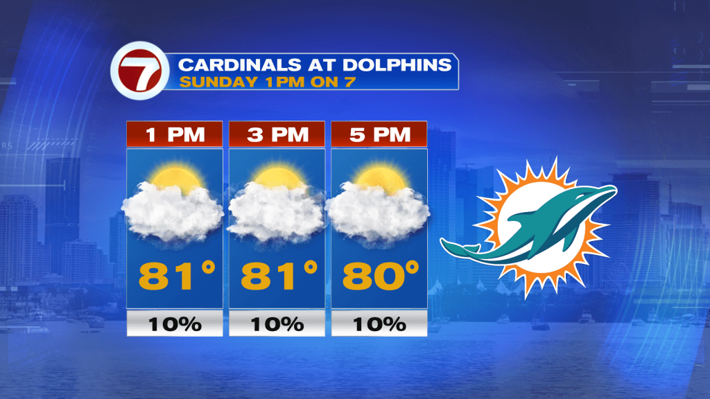 Sunday will feature likely dry conditions along with lower humidity and below average high temperatures in the low 80s. This will make for great conditions for the 1PM Dolphins game at Hard Rock Stadium!