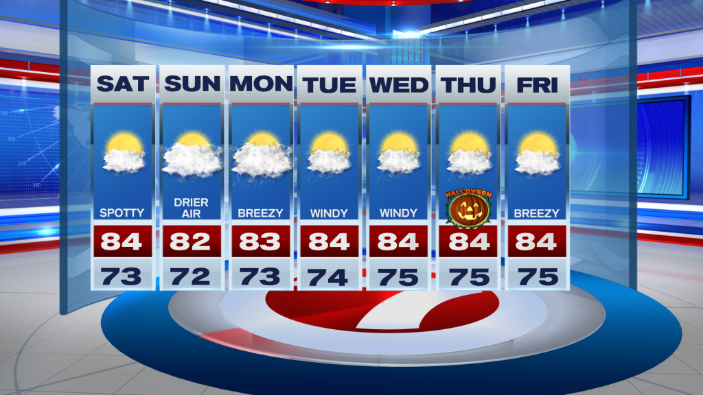 By Halloween, fewer showers are expected. It will still be quite breezy for the holiday Thursday but at least temperatures will be comfortable and seasonable.
