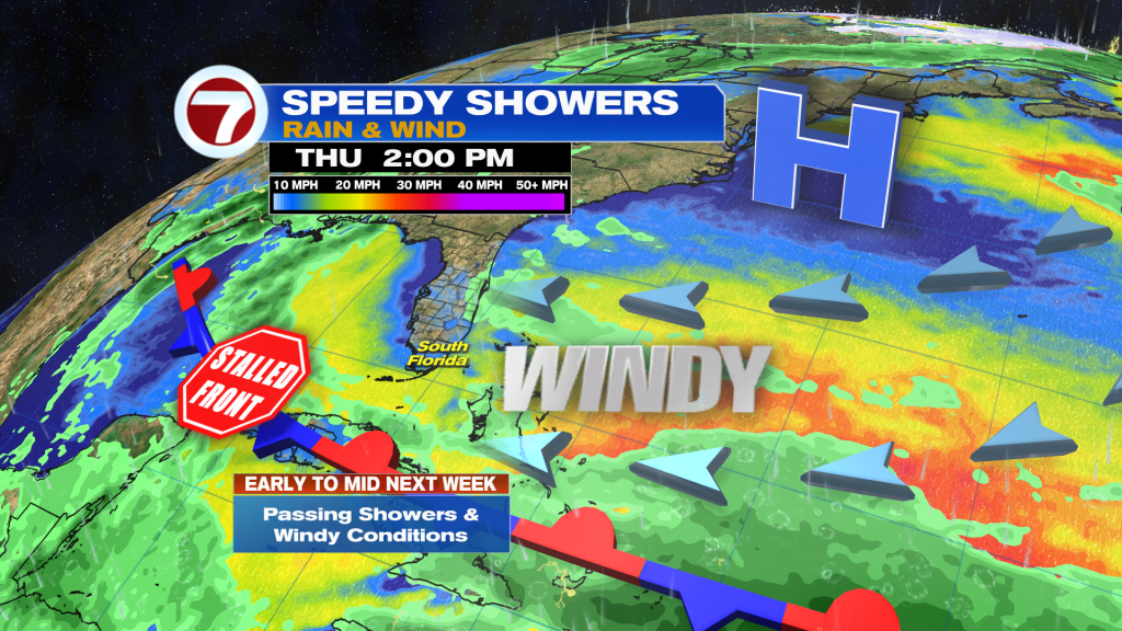 More in the way of significant changes are ahead for next week as a second front crosses through Monday into Tuesday. This front will usher in a return to the windy conditions through much of next week with passing rain showers possible, especially on Tuesday and Wednesday. As far as temperatures are concerned, highs will hold steady in the low to mid 80s.