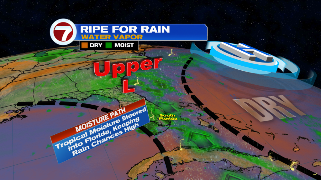 Weak low pressure around Florida has no chance to form, but still being monitored by NHC. It just pulling up tropical moisture leaving the air ripe for rain.