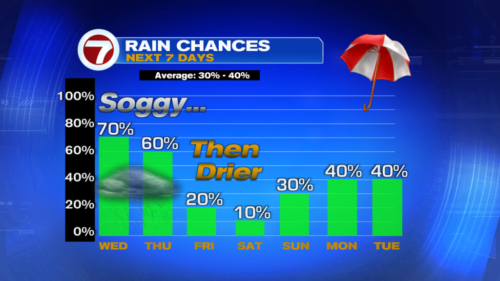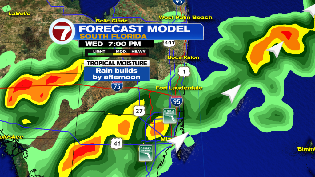 Models call for another round of storms by Wednesday afternoon, focused across Broward Co. by mid afternoon. This could lead to more street flooding as rain comes down over saturated ground.