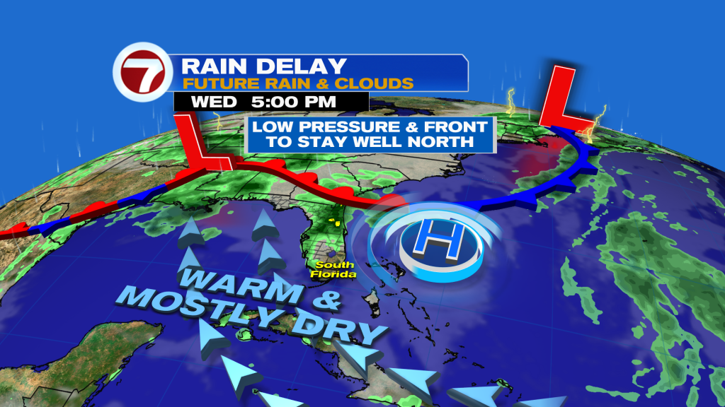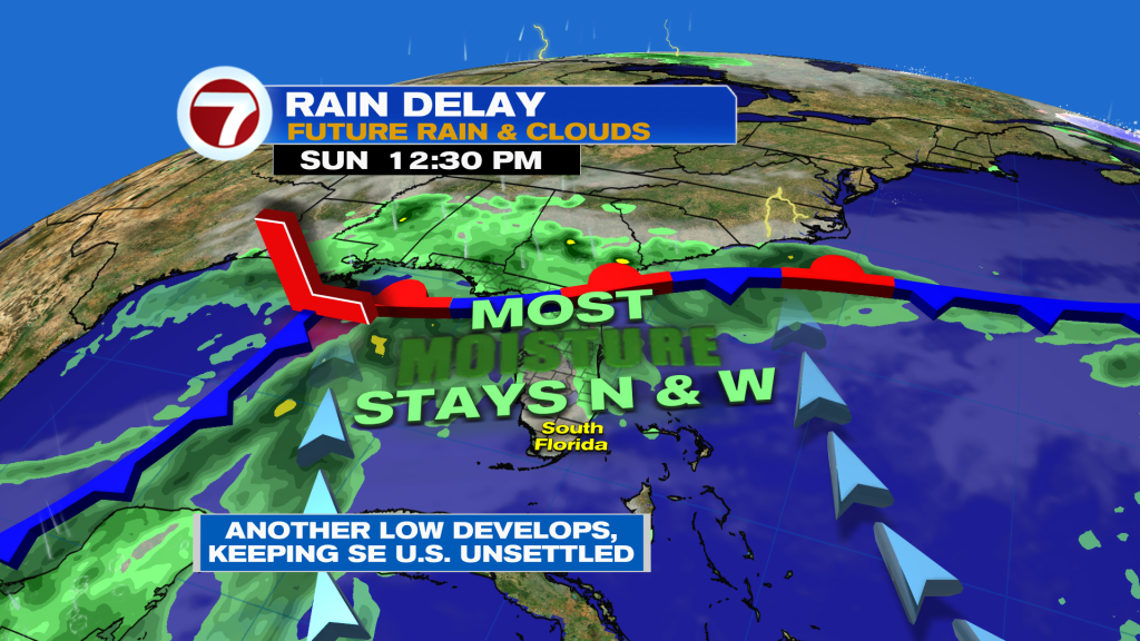 Changes then arrive early to mid next week as an area of low pressure forms over the Gulf of Mexico. This will help steer in more moisture and therefore scattered to numerous showers and thunderstorms.