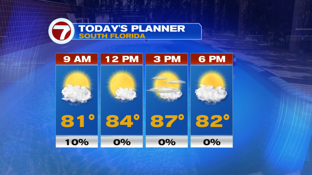 Otherwise, both Saturday and Sunday will feature partly cloudy to partly sunny skies and highs in the upper 80s, making for nice conditions for Mother’s Day.