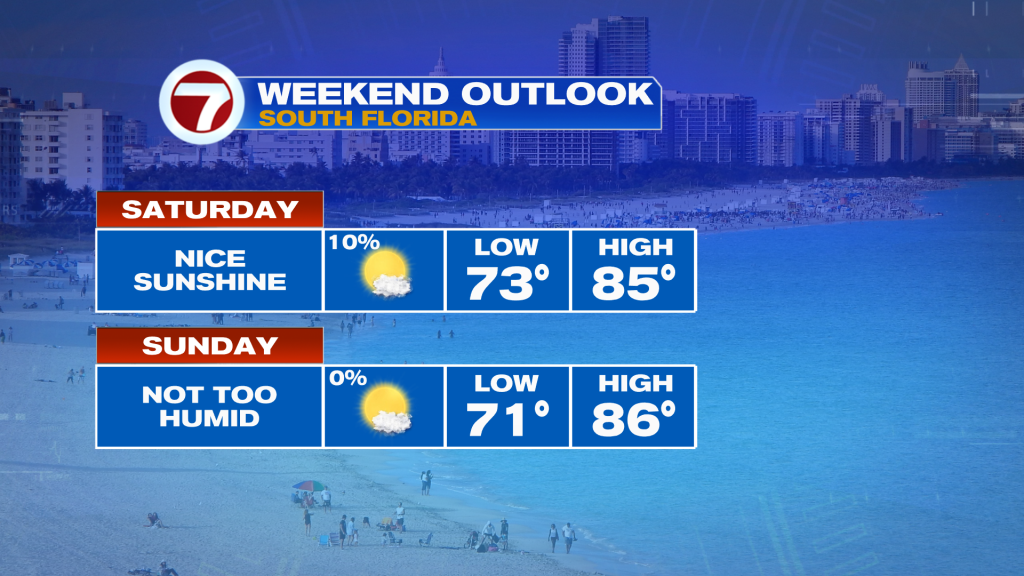 Following a few showers across parts of the Florida Keys Saturday morning, it will turn dry with sunshine and just some small, patchy clouds.