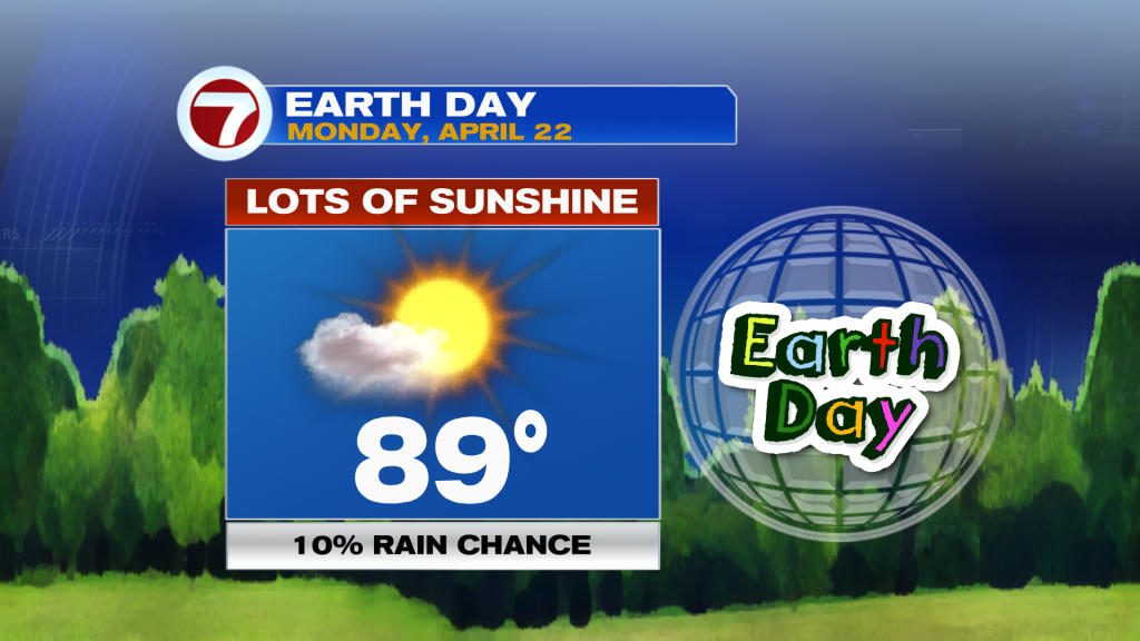 This will make for a rather hot and somewhat muggy Earth Day on Monday with mostly sunny skies still in the forecast.