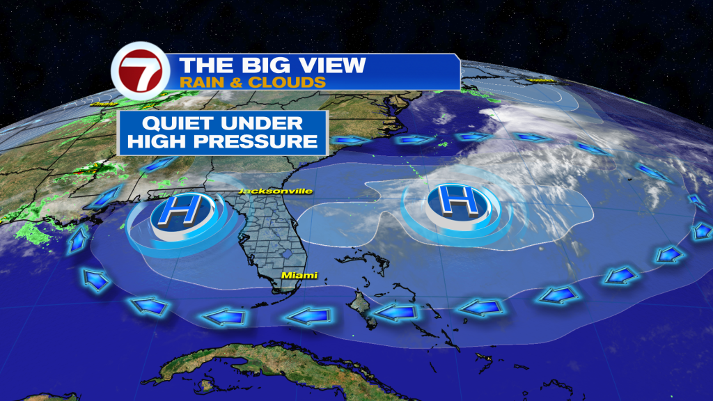 High pressure continues to dominate our weather pattern, extending across the Atlantic Ocean, Florida and into the western Gulf of Mexico.