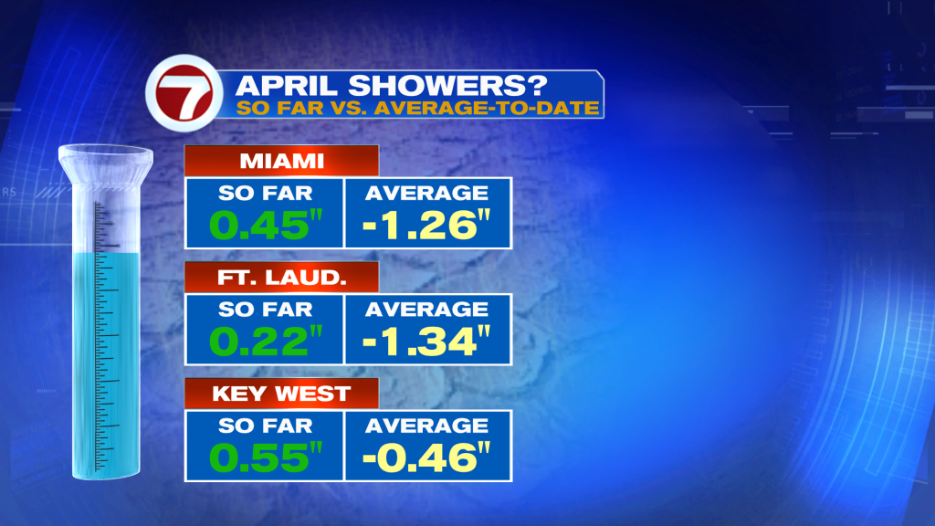Until then, though, rain chances will be low at a 10-20% chance most days. We could use the rain since all of South Florida is experiencing below average rainfall in the midst of brush fire season.