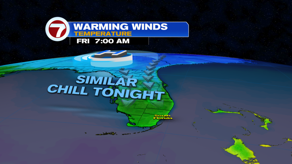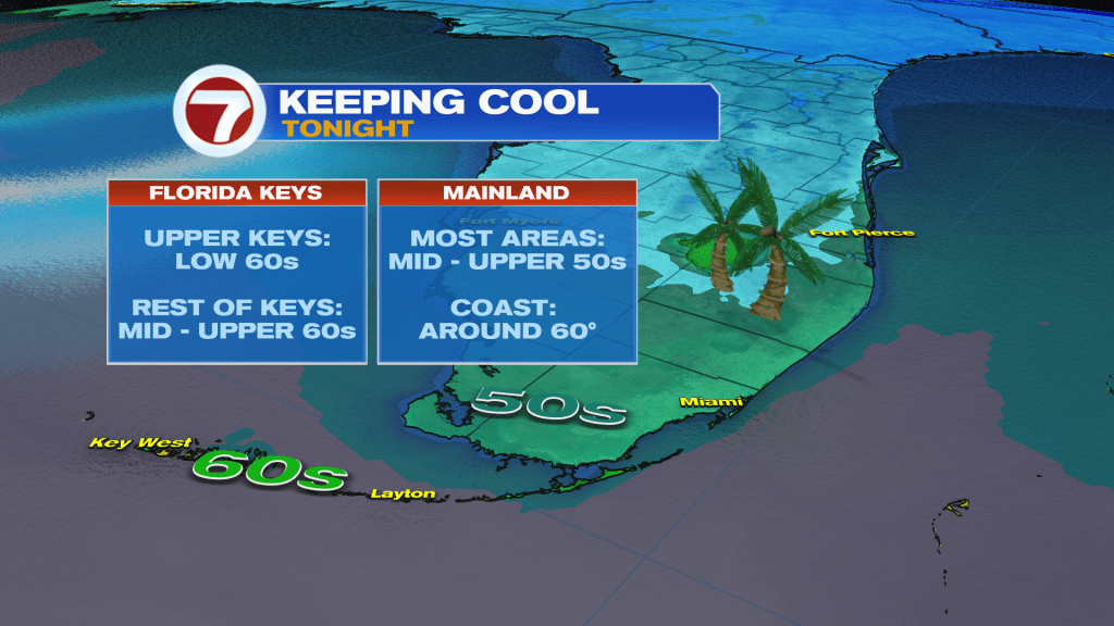 Low temperatures this morning were in the widespread 50s across mainland South Florida and widespread 60s in the Florida Keys.