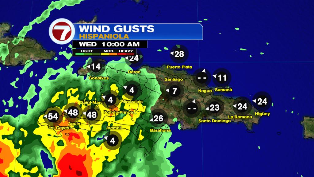 Tropical Storm-force wind gusts being reported in Southern Haiti from the feeder bands of Beryl. Forecast calls for 4 to 6 inches over the Tiburon Peninsula of Haiti. This heavy rainfall is expected to cause life-threatening flash flooding and mudslides.