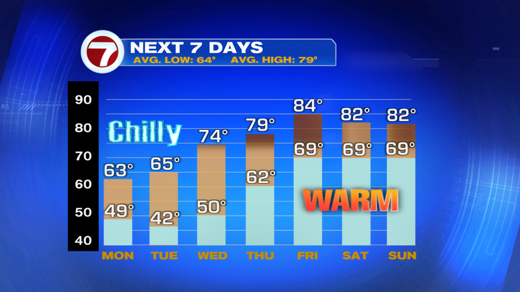 Tonight into early Tuesday morning will be the coldest stretch of the week. Interior Southwest Florida could dip below freezing, while many other inland areas fall into the 30’s. Along the East coast metro, lows drop into the low 40’s. With the breeze still around, wind chills could fall into the 30s for many areas and that is why interior Broward and Miami-Dade will be under a Cold Weather Advisory. Definitely a bundle-up kind of morning.