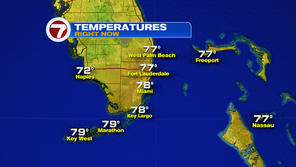 Hopefully everyone has been enjoying the week so far as we are finally quiet across South Florida. After a soggy and stormy start to the week, South Florida has now dried out and other changes have now moved in. Yesterday we noticed the breeze building throughout the morning and then it turned breezy throughout the remainder of the day. This is due to an area of high pressure in the Atlantic that is strengthening and will be the dominant weather feature for South Florida through the next few days. And because of the stronger winds across the area, overnight temperatures remained on the warmer side. This morning all of South Florida woke up in the upper 70s!