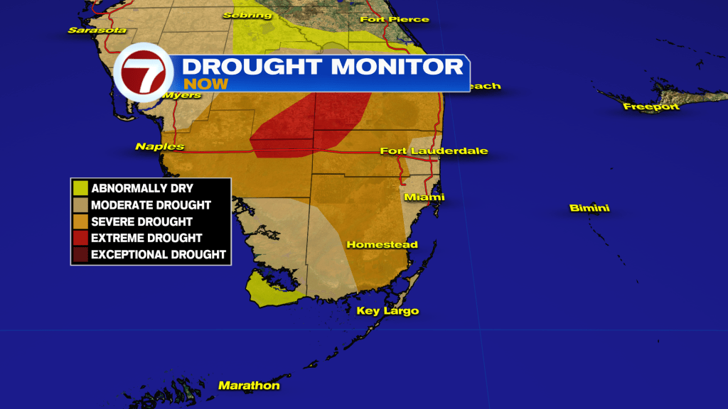 We finally made it to the end of the work week and what a way to end it. The weather has been just marvelous for the last few weeks as temperatures have been comfortable and humidity levels very tolerable. And so far 18 days into the month and South Florida has only had to deal with soaking rain less than a handful of times. But with this dry weather that we have been loving this month, comes a price. Most of South Florida has now been placed under a severe drought. That would be a level 3 out of 5. Interior sections of South Florida are now under an extreme drought. Needless to say, South Florida could really use the rain.