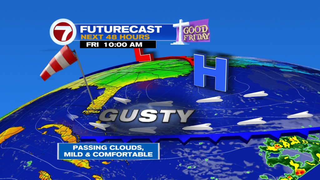 The big breeze will stick around through the upcoming holiday weekend. As a result, our temperatures in the morning will be warmer in the coming days due to that strong wind off the water. However, we will feel the difference in the afternoon as our high temperatures remain mostly in the lower 80s through much of the weekend. Wind gusts up to 30-35mph will be possible through Sunday. A spotty shower or isolated sprinkle will be possible at any point this weekend. Even still, rain chances across South Florida will remain on the lower end through much of next week as high pressure in the upper levels of the atmosphere continues to keep a very stable environment.