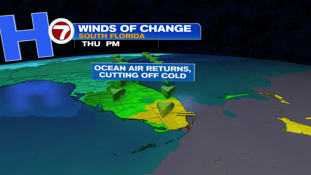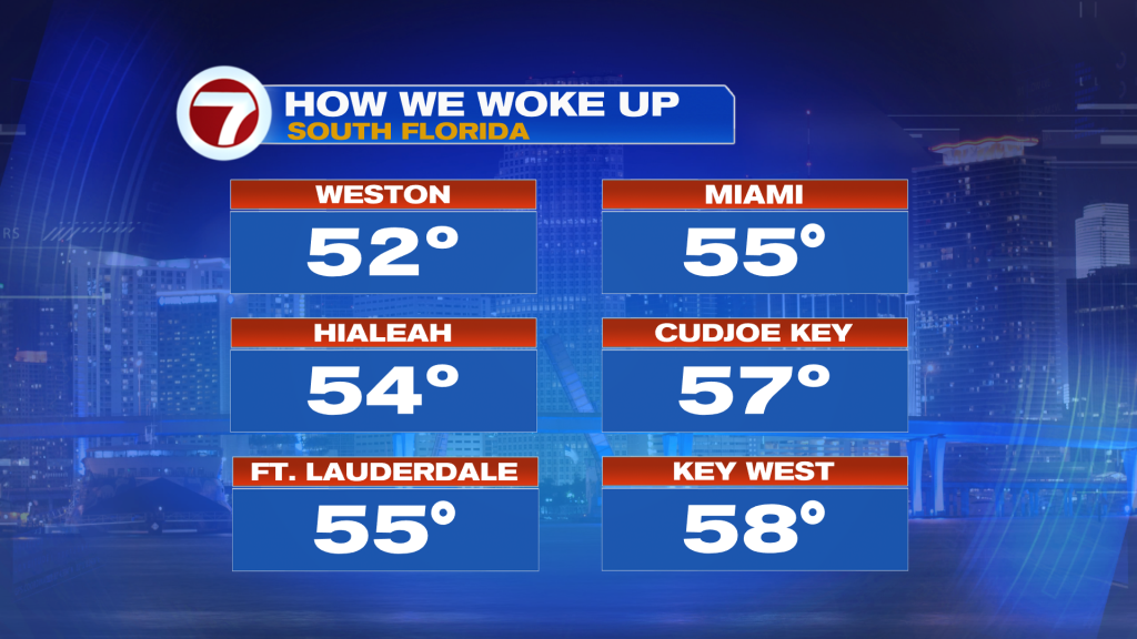A chill is sure in the air this Thursday morning following a late-day cold front Wednesday. Most of South Florida woke up in the 50s, including parts of the Florida Keys.