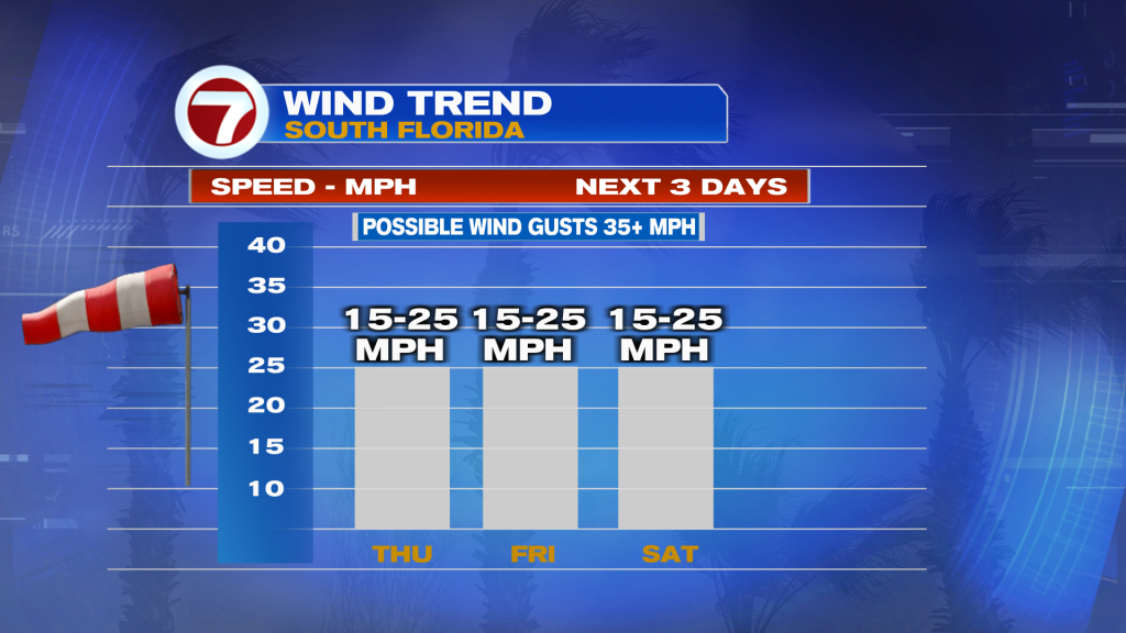 This will lead to several days of sustained winds up to 15-25 mph and gusts up to 35+ mph by the coast.