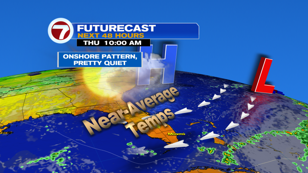 Winds will be out of the North and East today at the surface, so helping temperatures go down a good 5-degrees. This will have temperatures getting closer to normal in the upper 80’s with some moisture for rain around.