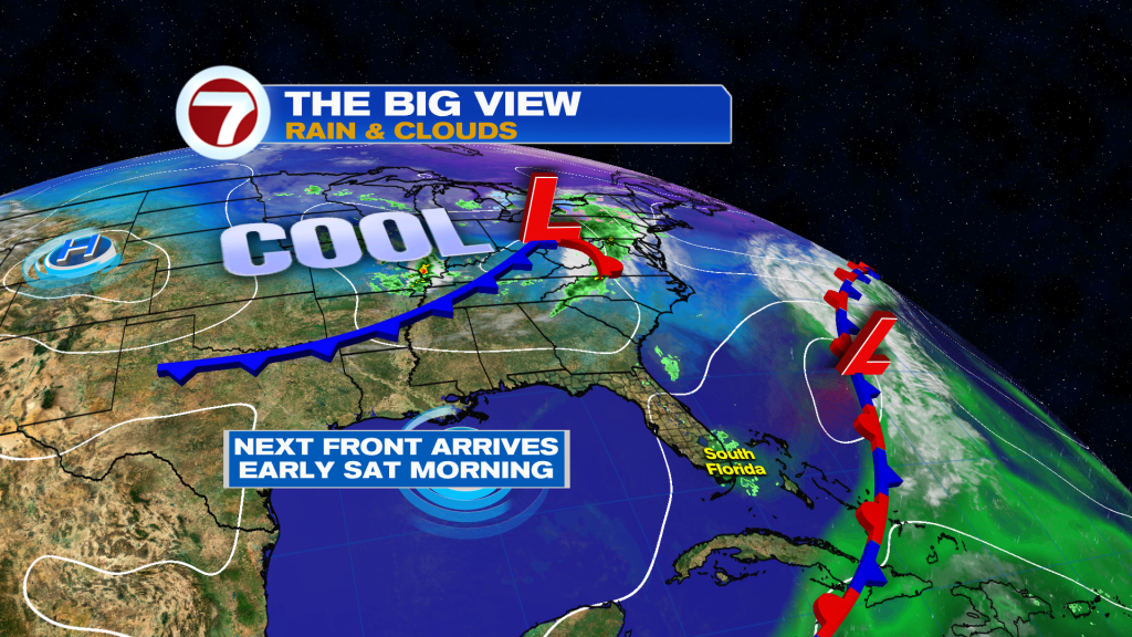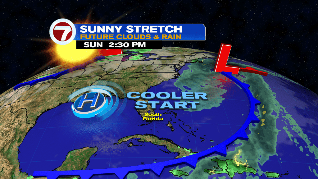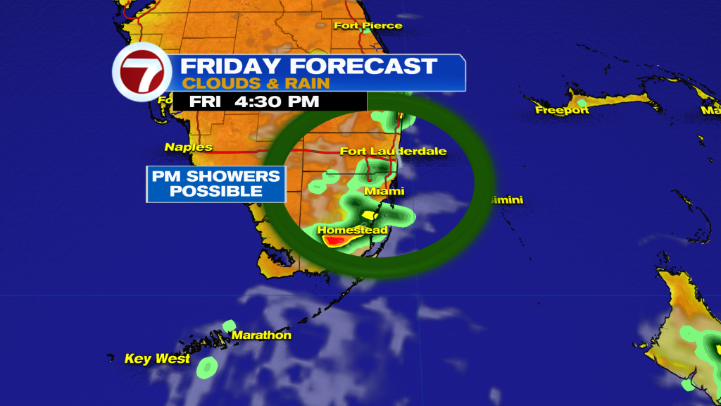 That will aid in warmer temperatures on Friday with highs in the mid 80s. There will then be the potential for a few showers to develop during the afternoon hours across parts of Miami-Dade and Broward. Regardless, plenty of dry time is expected with more sunshine versus Thursday.