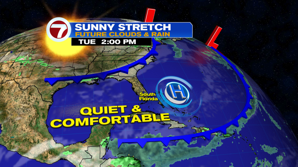 This quiet and dry pattern will continue into at least the first half of next week as high pressure moves across the Sunshine State.