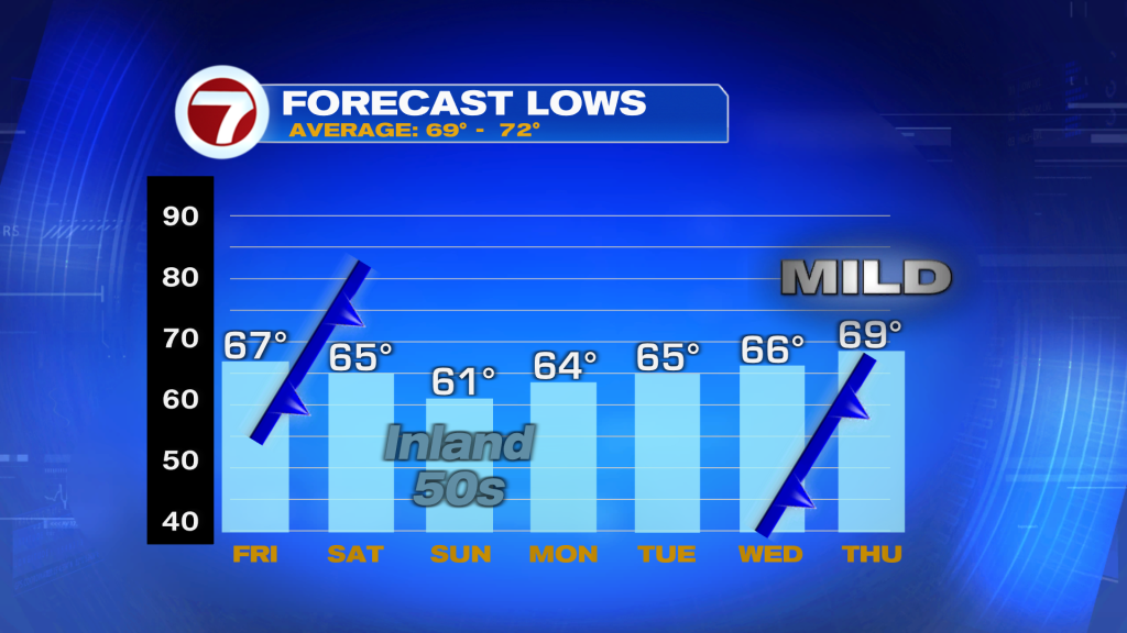 When it comes to the low temperatures in the morning, that’s when it will feel cool, especially on Sunday when widespread lows in the upper 50s to low 60s are forecast!