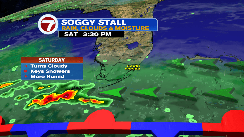 With all this said, expect morning sunshine then afternoon clouds Saturday with showers and storms possible starting in the afternoon for the Florida Keys.
