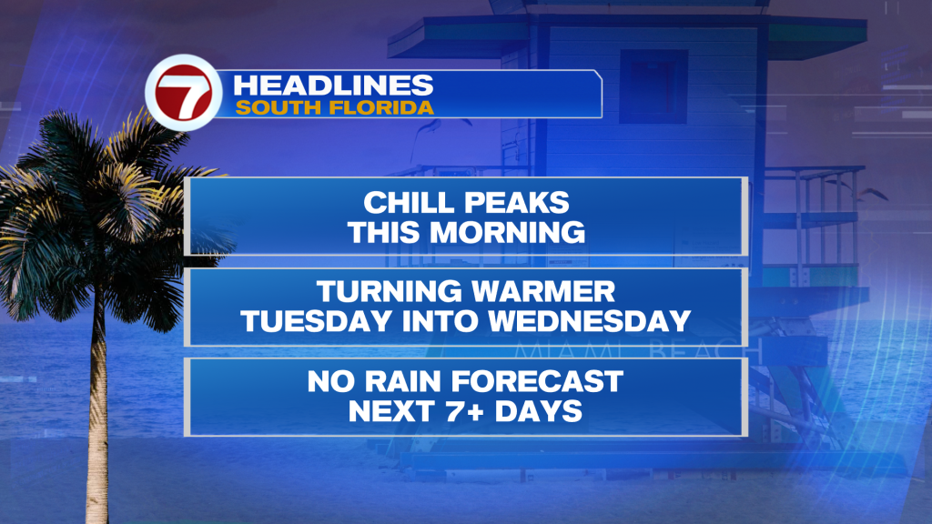The chill has peaked this Sunday morning across the region with widespread lows in the low 60s across the metro while inland locations have fallen into the mid to upper 50s.