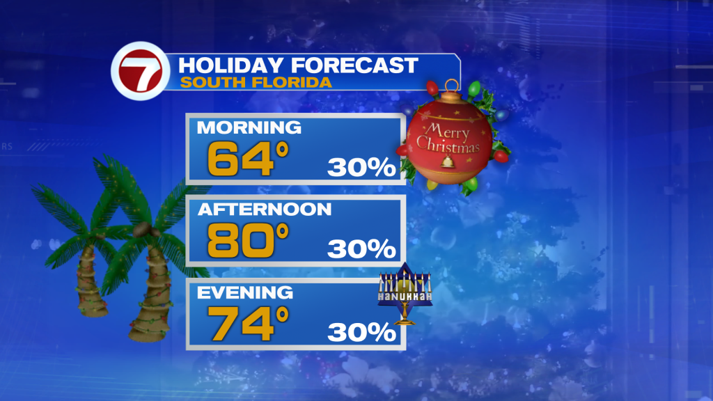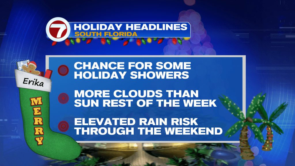Looking ahead, the return of ocean air will continue to bring milder temperatures across South Florida. Today’s elevated rain risk will remain in place through the second half of the holiday work week as a daily dose of showers will be possible through Friday and possibly the weekend. Clouds will continue to build and the mostly cloudy skies will stick around through the second half of the work week. A breeze off the water will also build after Christmas, which means South Florida will also turn breezy through the second half of the holiday week. While some more sunshine is possible for the start of the last weekend of the year, clouds build once again by Sunday and rain chances increase yet again ahead of a weak front that looks to bring drier conditions for the final days of 2024 and cooler temperatures for the first few days of 2025!