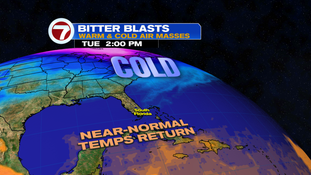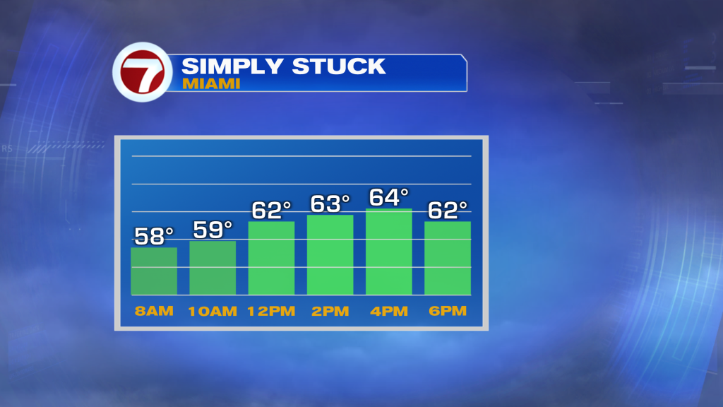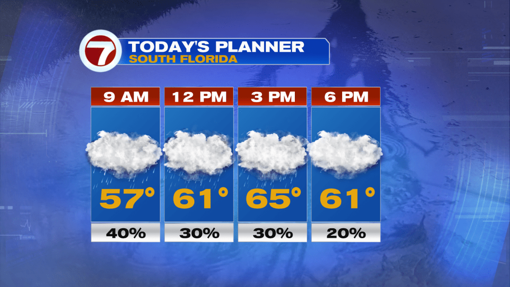 We can thank the cloudy skies and a northerly wind, which will be gusty at times — especially across the Florida Keys where it could reach 35 mph — that will keep it quite chilly for our standards this Wednesday. There will also be the chance for light rain showers and a mist at times, especially during the morning and midday hours.