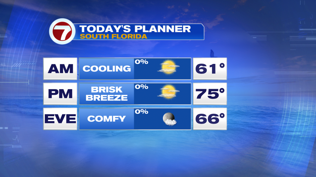 This first Friday of spring across South Florida will bring beautiful conditions with very low humidity levels across the region. Temperatures in the afternoon will only be reaching into the mid 70s due to filtered sunshine across the region throughout the day. Gusty winds out of the northwest returned to the forecast, which will also make it feel cool from time to time if you’re not standing in the sun. And even though it will feel nice, the very low humidity is the last South Florida needs right now given the brush fires we have been battling across Southern Miami-Dade for days now.