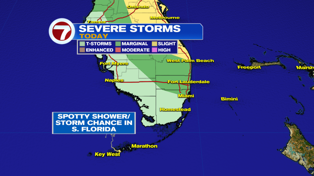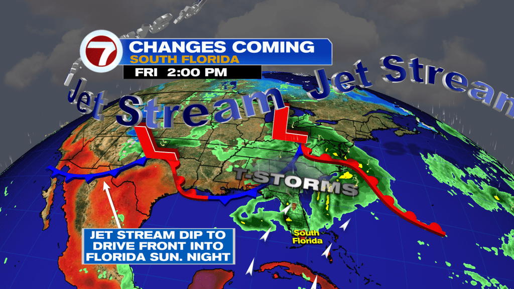 By Friday, winds turn from the Southeast to the Southwest as a weak front moves into Northern Florida. This will set the stage for steamy conditions to be felt all across South Florida through the weekend with high temperatures in the upper 80’s to low 90’s. Also, moisture level creep up as well Friday, so a chance of scattered showers and storms possible bother morning and afternoon.