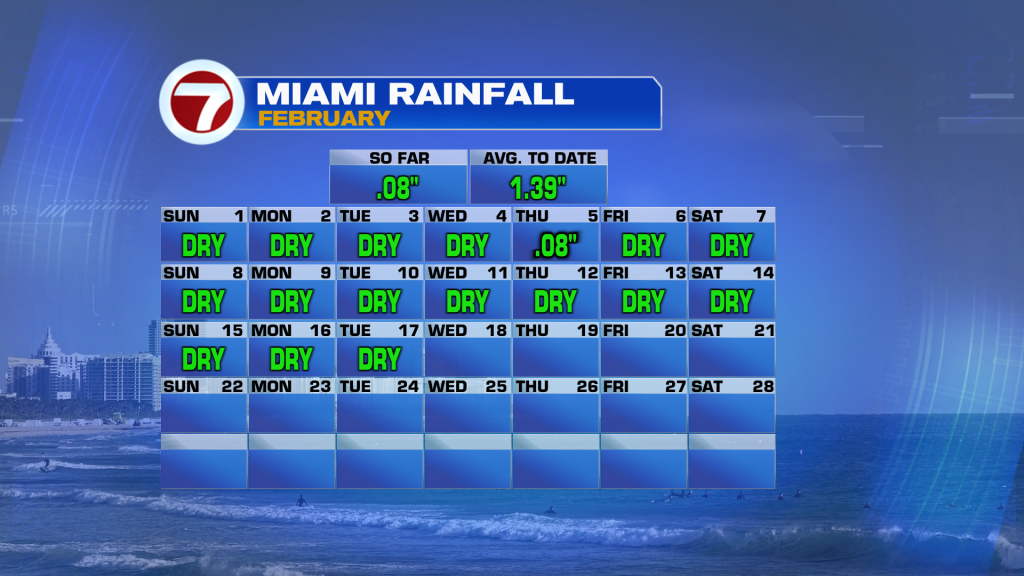 Meanwhile, Miami got no rainfall and is in a very significant rainfall deficit with only one day so far this month measuring rain.