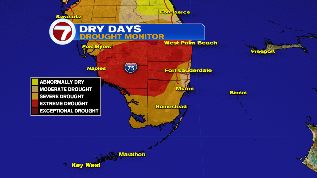 Hopefully everyone has been enjoying the dry and quiet weather pattern we have been experiencing. The month of April ended as the driest since the year 2006. Miami only received 1.03″ of rain in the entire month! It was also the driest April for Fort Lauderdale since 2022 and the driest for Key West since 2021! South Florida really needs the rain as much of metro Miami-Dade and Broward have been placed under a severe drought. The extreme drought across interior sections of South Florida continues to grow in size and now includes of western Broward (just west of the metro). This is what we mean when we say, we need the rain.