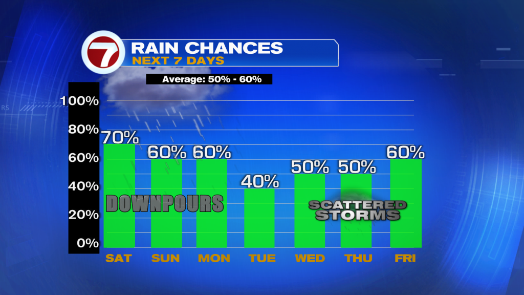 This Saturday will not be a washout but there will be more clouds and storms around than sunshine, especially by the afternoon. Therefore, if you have any outdoor plans do them before 11AM because after that point, rounds of thunderstorms will become likely across mainland South Florida. There is also the potential for severe weather, especially in Broward County with the risk for strong winds, small hail and an isolated tornado. Areas that see repeated rounds of heavy rainfall will also be at risk for street flooding.