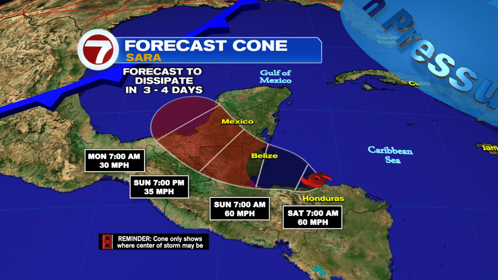 Ahead of this front will be possible showers and thunderstorms moving through Wednesday. This front will even contain Sara’s remnant moisture, but thankfully Sara is forecast to dissipate and will not be a tropical system for the US.