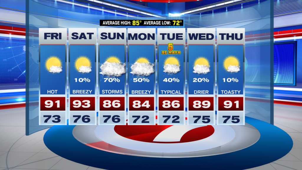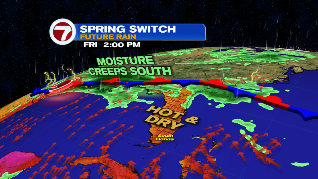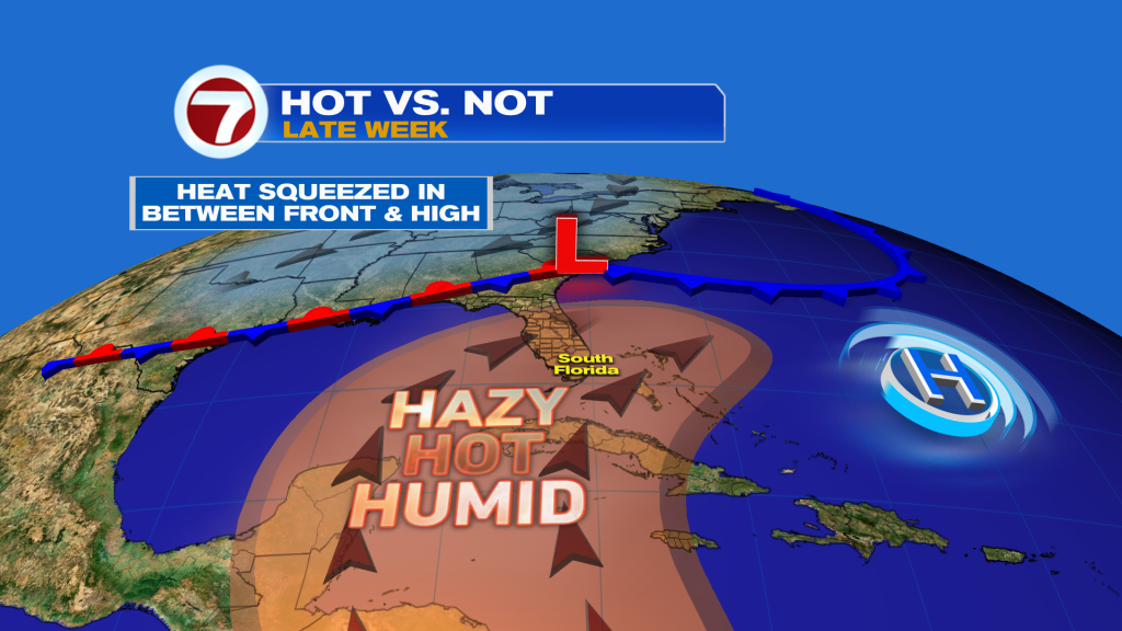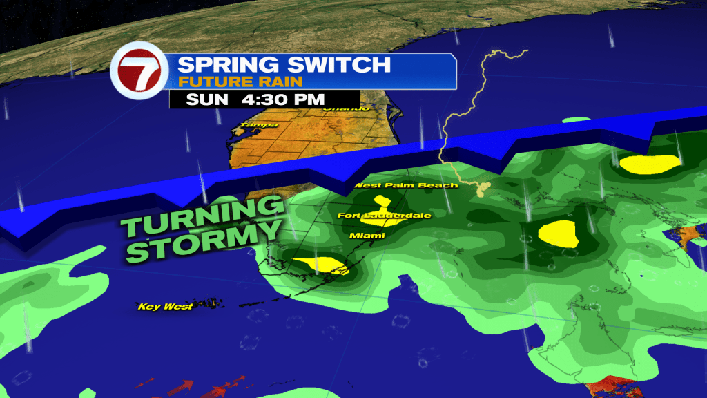 That’s because a front is on the way. This front arrives on Sunday and then stalls near or over South Florida, leading to an unsettled start to next week.
