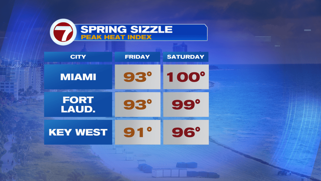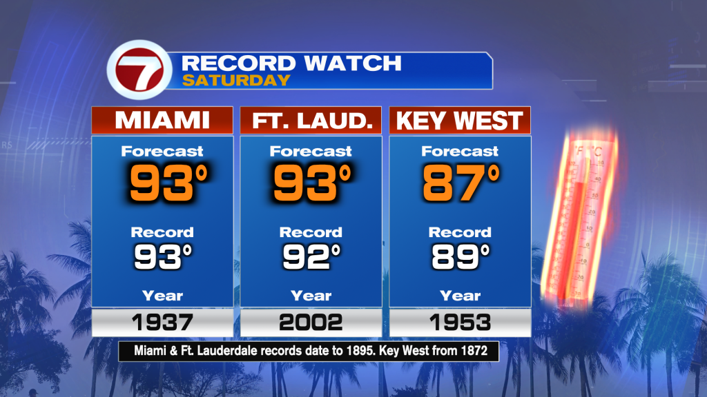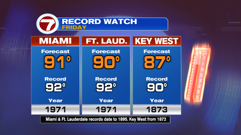 On Friday, Miami is forecast to be just 1F shy of the record high and Fort Lauderdale forecast to be 2F short of the mark.