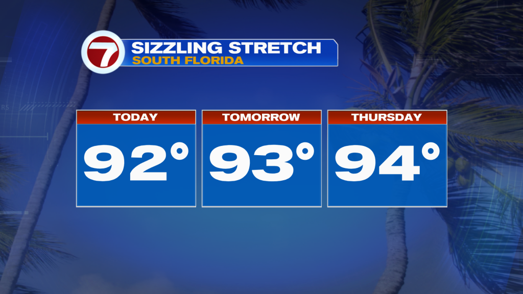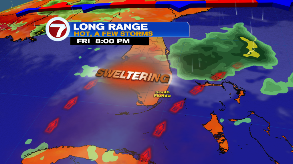 However, the pattern will go from stormy to sizzling as drier filters into South Florida. High temperatures are expected to range into the low 90’s and feeling more like the triple digits (between 100-105 degrees) through Father’s Day weekend.