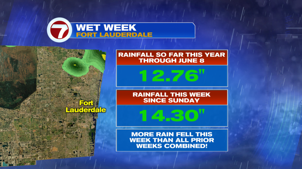 More rain fell this week than all prior weeks combined in Fort Lauderdale. Rainfall this week since Sunday was 14.30″.