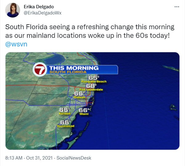 Hopefully everyone has had a great start to the weekend. The end of October quickly arrived and the nice weather conditions in South Florida made it just in time before the month ended. This morning temperatures across south Florida were quite comfortable. Most of our area woke up with lower humidity and temperatures in the 60s and it looks like this nice weather will take us through the beginning of November.