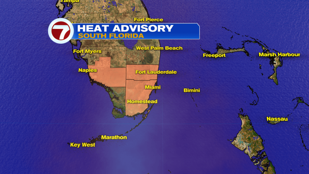 An even hotter day is ahead this Sunday with all of South Florida, including the Florida Keys, under a Heat Advisory from the late-morning through early evening hours today for dangerous feels-like temperatures up to 111F.