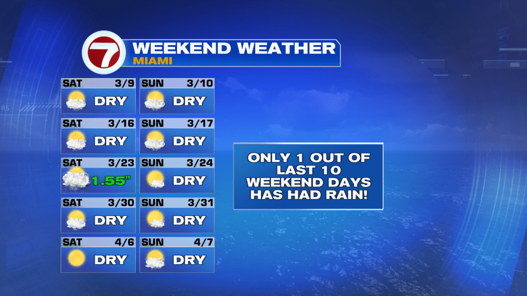 This will make for yet another nice weekend. In fact, 4 out of the past 5 weekends have been dry and bright across South Florida!
