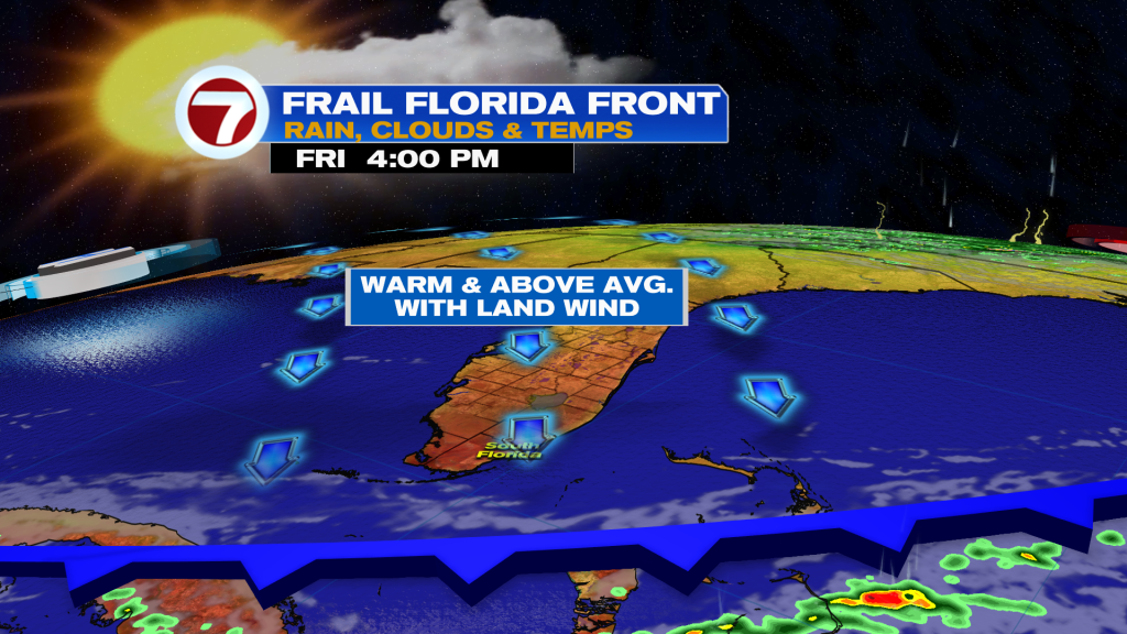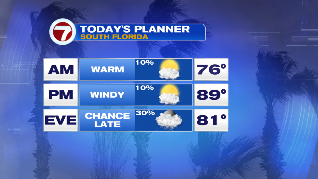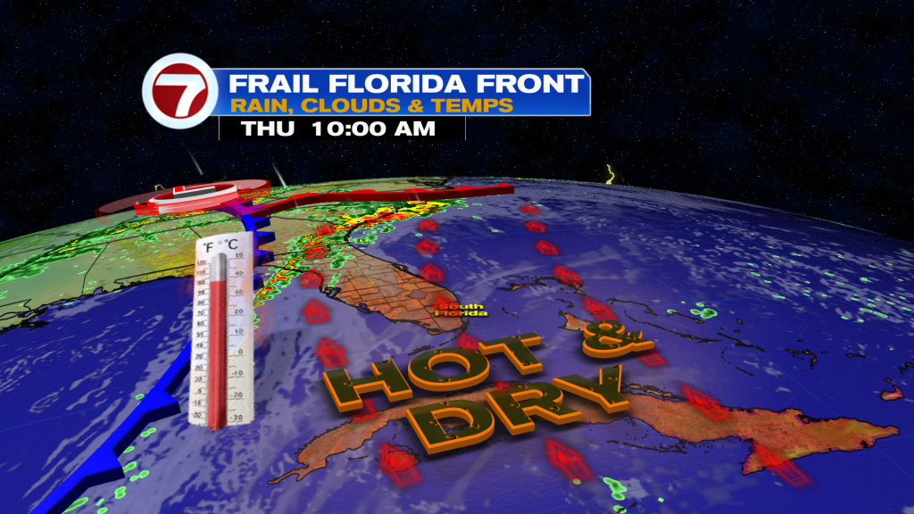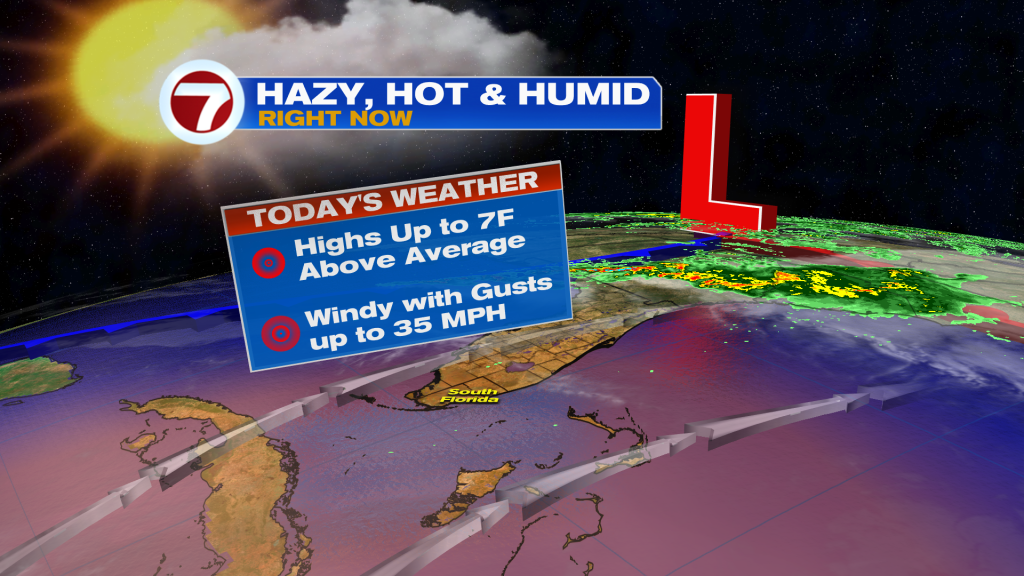 It’s thanks to winds veering out of the south to southwest ahead of a weakening front this Thursday, which is a common setup for hot and humid days in South Florida.