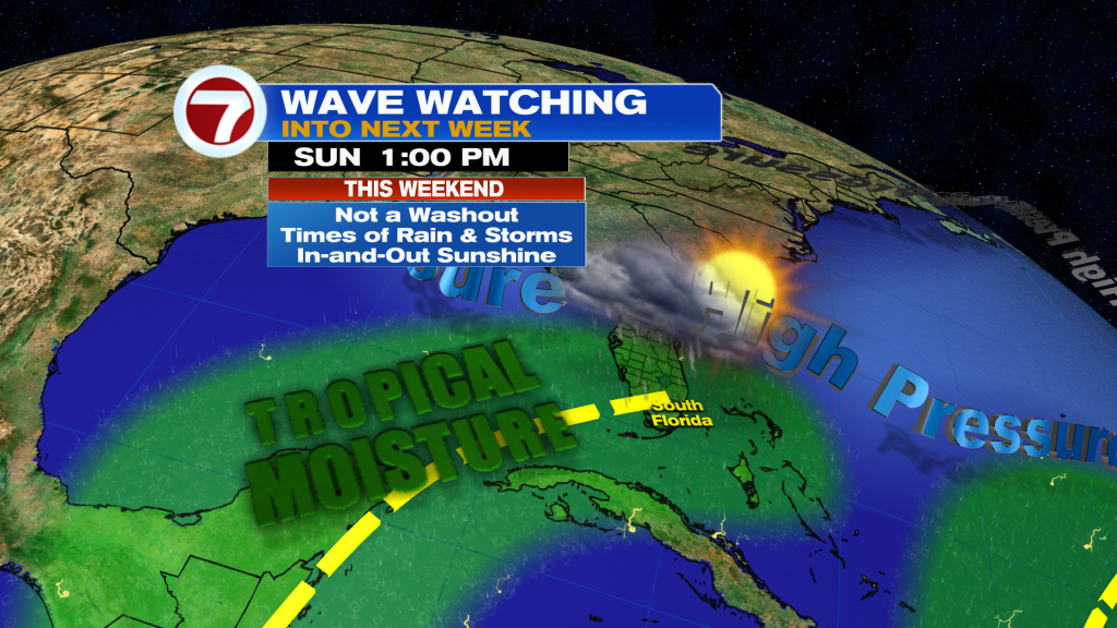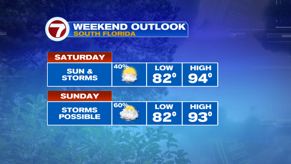 Then on Sunday, as the Keys and east coast metro shift to the backside of the tropical wave, there could be more moisture in place. This means more clouds are expected overhead and a higher rain chance with scattered showers and thunderstorms expected.