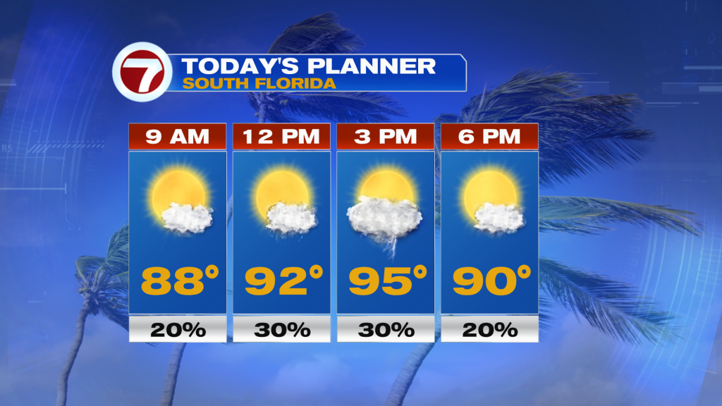 As to no surprise, another hot weather day is ahead this Friday to round out the work week. Then some changes arrive this weekend as a tropical wave passes through South Florida with more moisture.