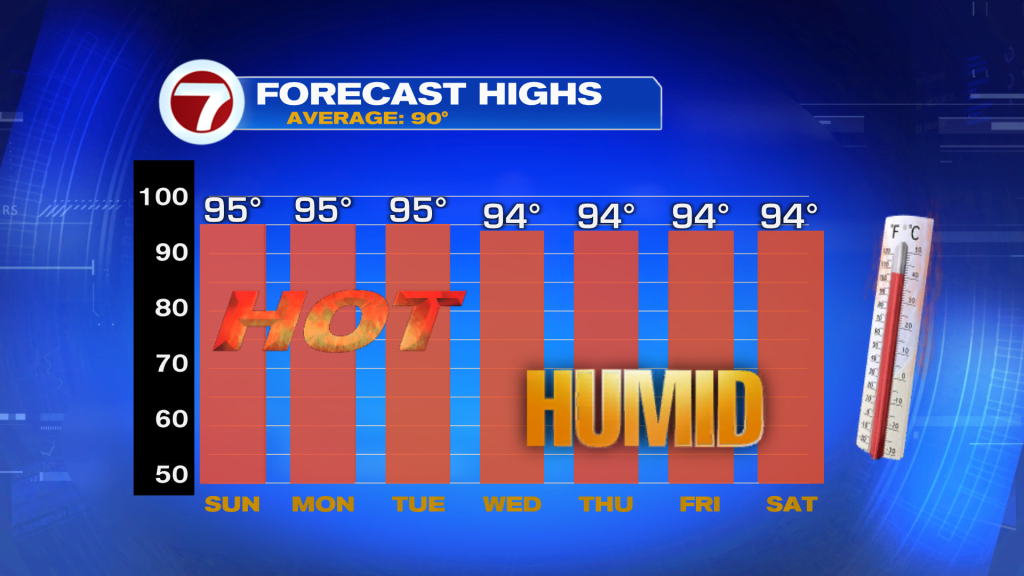Highs will remain in the 90s over the next 7 days with feels-like temperatures in the triple digits.