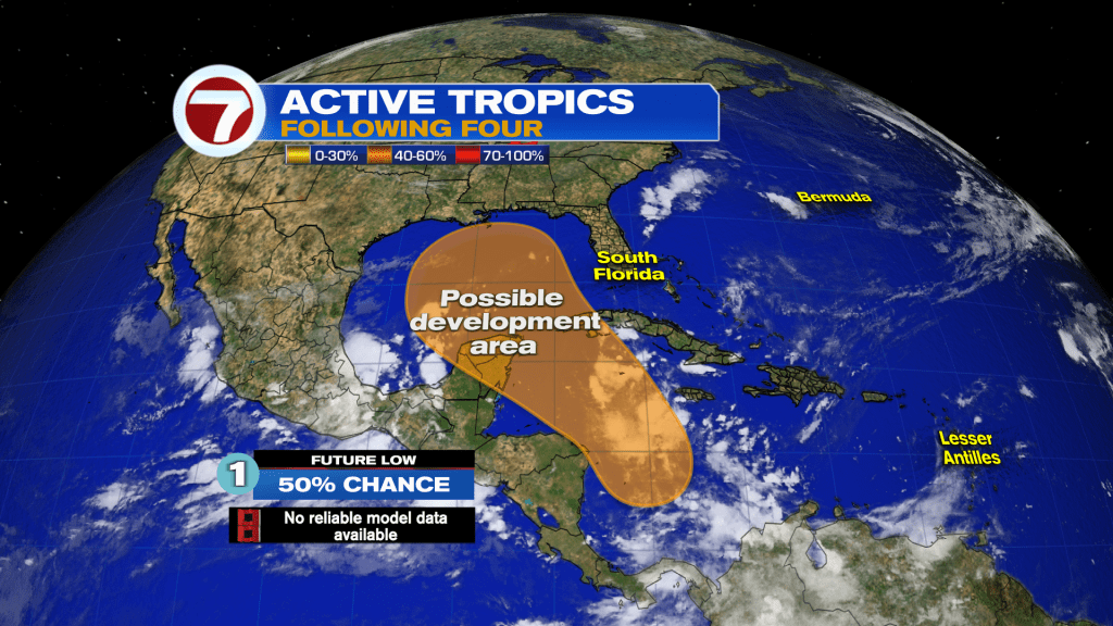 There are lots of questions about whether something will even form and if something forms, then how strong could it get and where will it track. Since nothing has formed right now, the forecast remains uncertain. The National Hurricane Center gives odds of development at 50% chance. At this time for our interest in South Florida, it’s a forecast worth monitoring but nothing to worry about at this time.