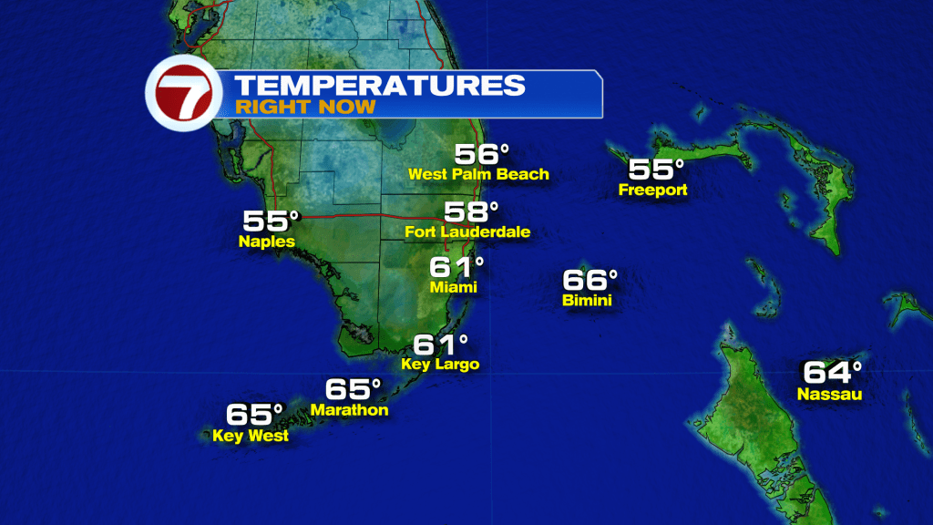 Hopefully everyone got to enjoy some time outdoors yesterday as South Florida experienced the most beautiful day. After Monday’s front, temperature cooled down yesterday with the return of a northwest wind and dropped into the 50s for many of our mainland areas of Miami-Dade and Broward. Afternoon high temperatures also remained very comfortable in the upper 70s. It was almost a sin if you couldn’t spend just a few minutes outdoors! This morning we once again woke up to comfortably cool conditions with temperatures in the 50s and 60s across South Florida.