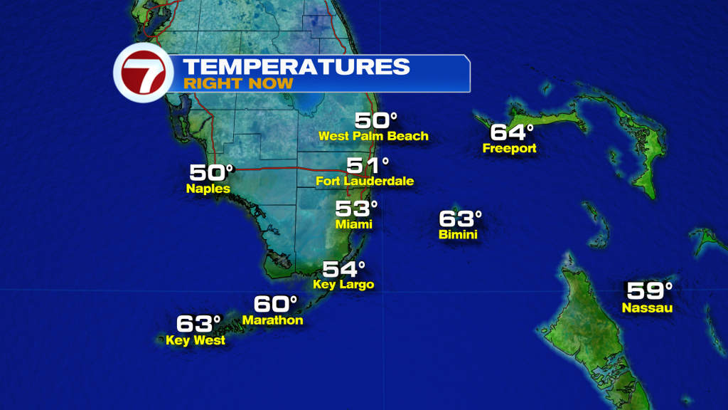 Hopefully everyone had a nice work week. South Florida experienced up-and-down temperatures this week together with a mixed bag of weather across the region. By the middle of the week a front came through and wiped away the moisture and the warmth and it brought really nice conditions for the second half of the work week. And even though Thursday was very pleasant across South Florida, it wasn’t until this morning where we really got to experience much cooler temperatures. We started the day off with temperatures widespread in the 40s and 50s for Miami-Dade and Broward while the Florida Keys enjoyed comfortably cool temperatures in the 50s and 60s early this morning.