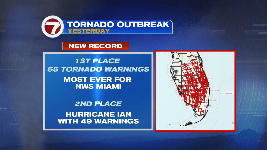 As Milton pushes east across Florida today, the occasional outer band can still push through the area bringing gusty winds from time to time. Breezy to windy conditions will continue on and off throughout the day, however, wind speed should begin to subside some as we work through the second half of the day. A tornado watch that had been issued for South Florida was allowed to expire last night. And the tropical storm warning for South Florida was also let go. A wind advisory has been issued for Coastal and Metro areas of Miami-Dade & Broward until 4pm. After days of cloudy skies & heavy downpours, the sun will once again peek out from time to time and with a wind out of the southwest today, our afternoon high temperatures could reach the mid to upper 80s once again. That’s if the clouds don’t block out the sun.